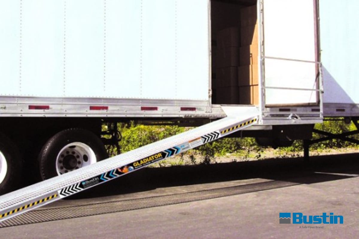 The Bustin F600A and F601A platforms have so many safety features – where to start? How about with the largest platform width: 52″. A ramp can be attached to the platform to run perpendicular to the trailer to avoid running into traffic. To top it off, the F600A or F601A come complete with a front safety rail, a hinged down mini-ramp to ease any transition from the trailer floor to the platform, and a safety chain for enhanced fall protection. The F600A and F600A deploy in less than 40 seconds.